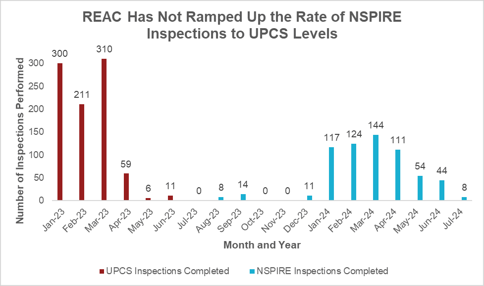 - The data HUD has provided show inspections being conducted at 48 NSPIRE inspections per month.